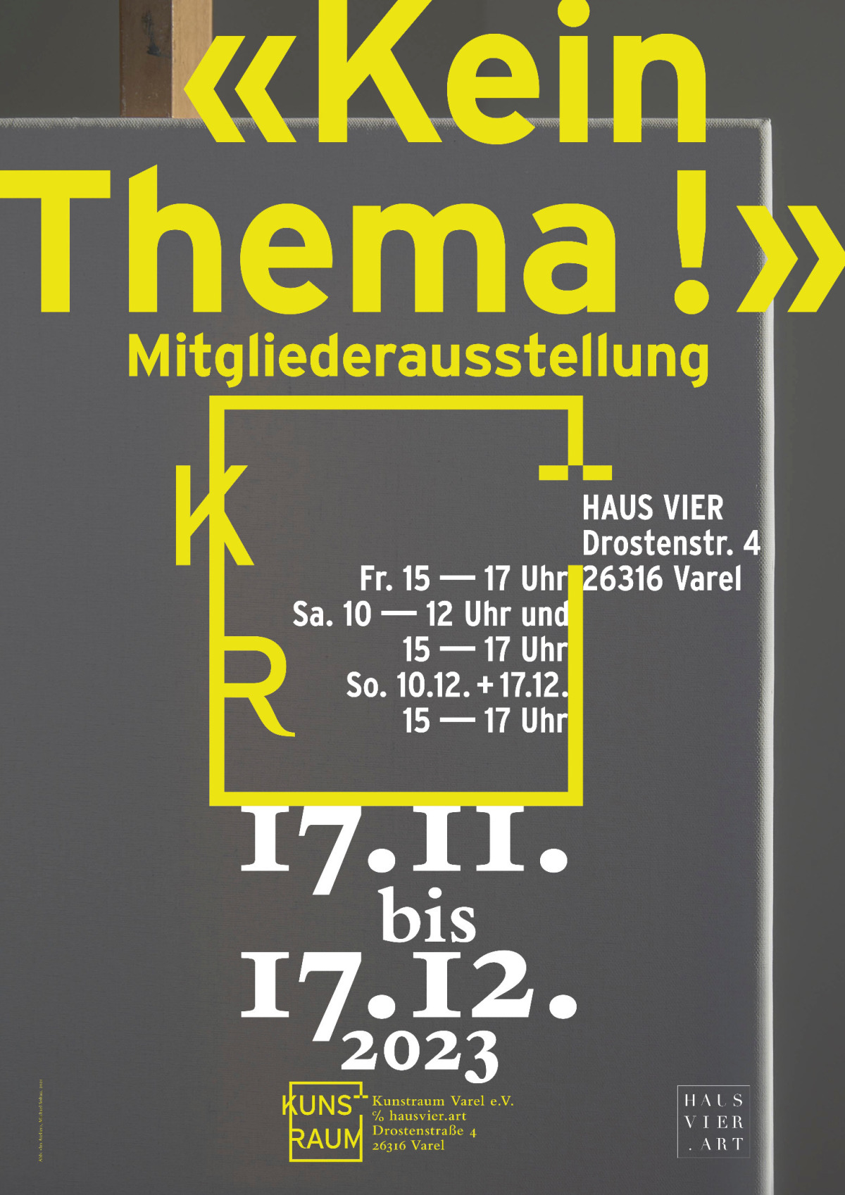 Mit der Ausstellung "Kein Thema!" des Kunstraum Varel öffnet das HAUS VIER am Freitag, den 17.11.2023 um 19h zum ersten Mal seine Türen.